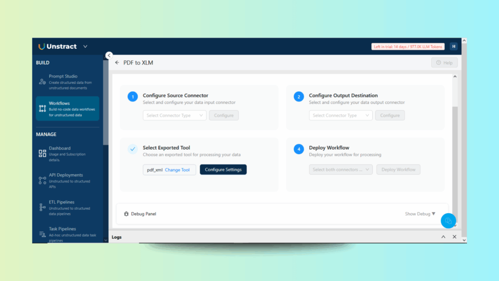Unlike fixed rule-based systems, Unstract integrates LLMs, embeddings and vector databases with a user-friendly environment. This allows teams to create extraction logic and schemas without writing extensive code.