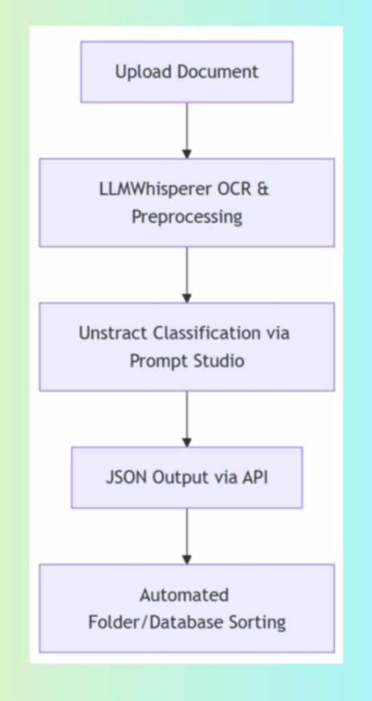 This enables automated routing, smart foldering in DMS systems, and metadata tagging—replacing manual sorting with a resilient AI-driven model.
