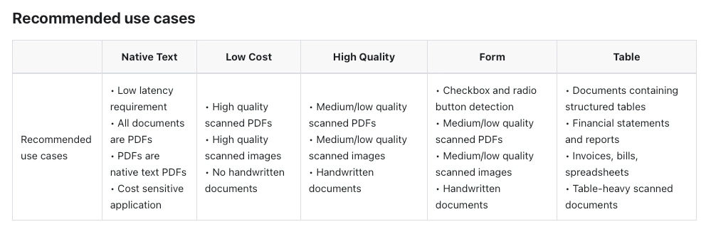 Here is an image from LLMWhisperer’s documentation site showing the different processing modes: