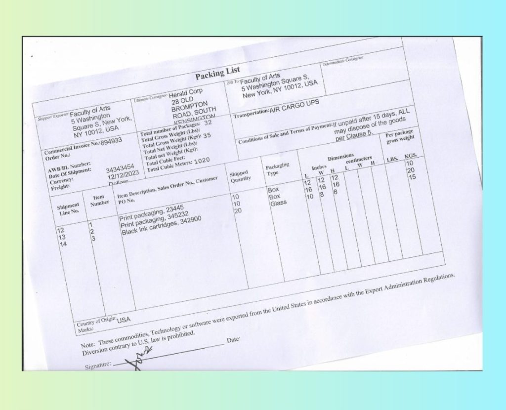 In this case study, we work with a scanned packing list that is slightly misaligned and contains dense tabular shipping data. The main challenges here are: