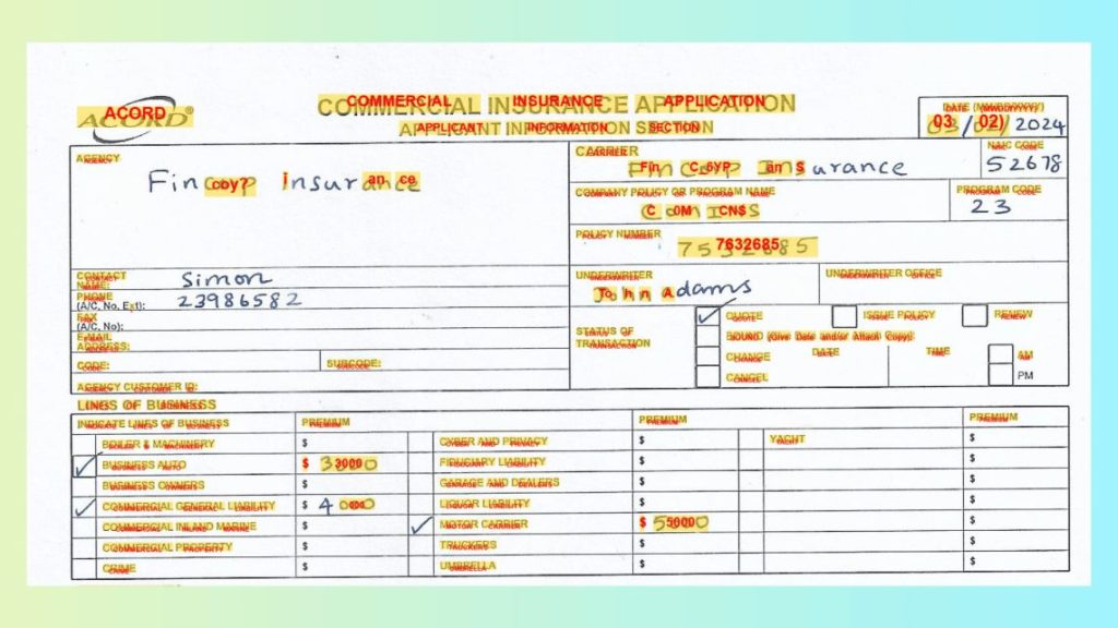This ensures names, addresses, policy choices, and payment selections remain properly associated with their labels—critical for reliable RPA with OCR workflows in international environments.