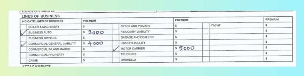 A policy number appears on a different line