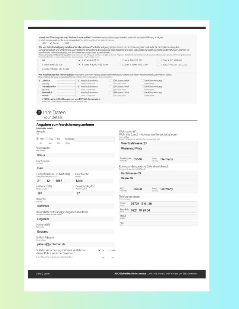 Seite 2 von 9 ALC Global Health Insurance ... wir sind anders, weil wir uns um Sie kümmern.