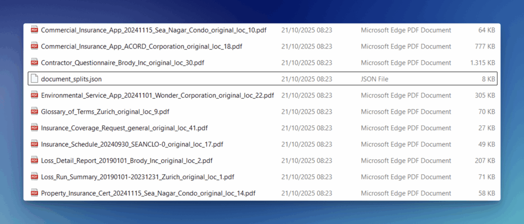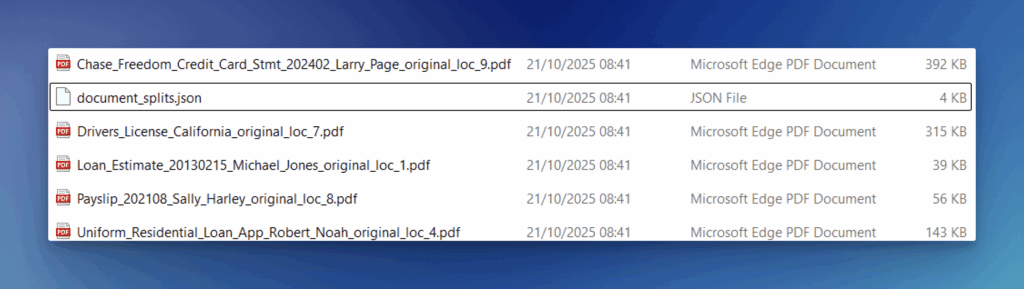 Splitting these PDFs manually is a slow, inconsistent, and expensive process. Workers have to go through each page, figure out where one document ends and another starts, and then save them one by one. It’s easy to make mistakes, and the process doesn’t scale well, especially when every document set looks different, with varying layouts, orders, and page counts.