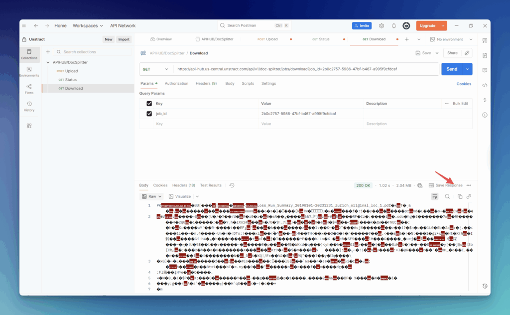 The Combined PDF Splitter API is a REST service from Unstract. POST your combined file to the Upload endpoint; poll the Status endpoint with the job_id; then download a ZIP containing the split PDFs and structured metadata. You can call it from Postman, Python, Java, or any workflow tool.