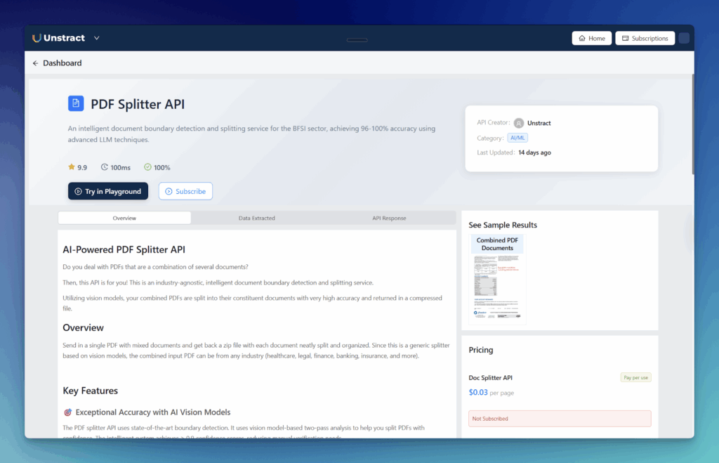 These industries often deal with huge stacks of unstructured, scanned, or mixed documents. Manually sorting through them is slow and unreliable. Unstract’s API brings automation and intelligence to the process, so teams don’t have to waste time splitting files by hand. Everything stays organized, easy to search, and ready to use, making workflows faster and more efficient.