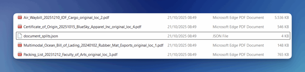 As you can see, the API did a great job splitting the logistics documents, even with scanned or poor-quality files, keeping everything clearly separated and correctly labelled, no matter how messy or hard to read the originals were.