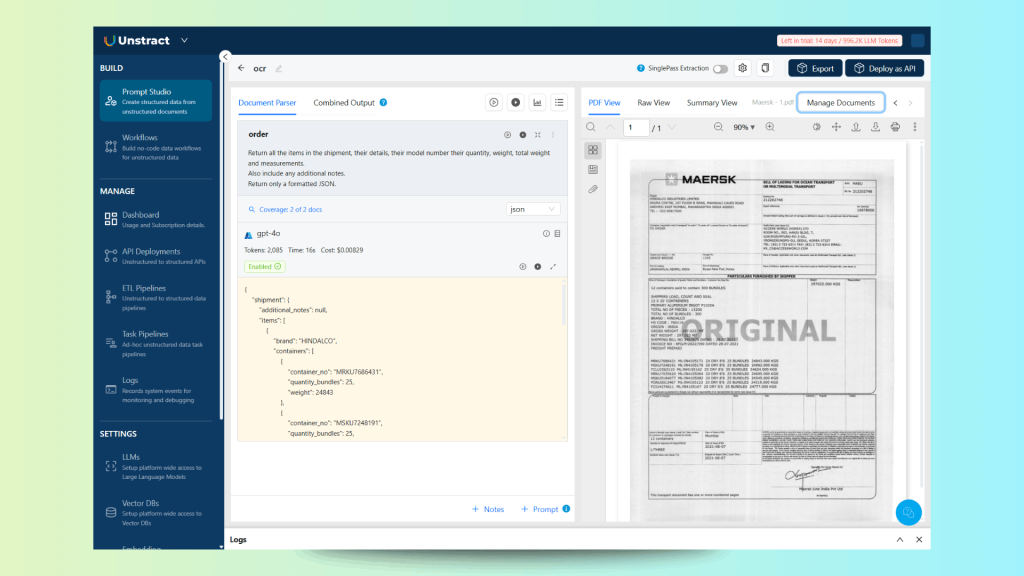 LLMWhisperer bridges the gap between traditional OCR and LLM-based document understanding. Unlike direct LLM parsing, which often fails on complex layouts, LLMWhisperer transforms documents into LLM-ready formats that preserve relationships, maintain context, and enable accurate extraction.